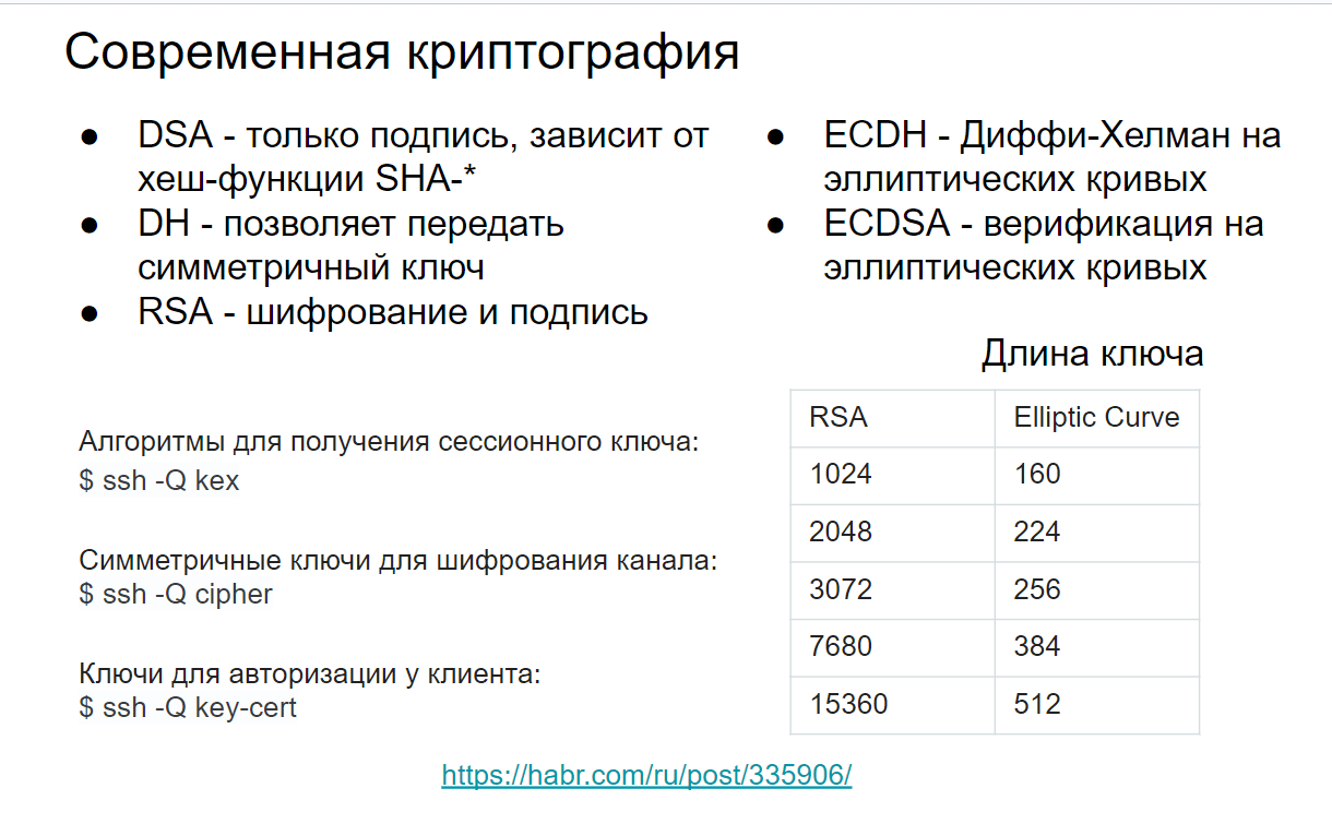 Примеры использования криптографических алгоритмов в SSH¶